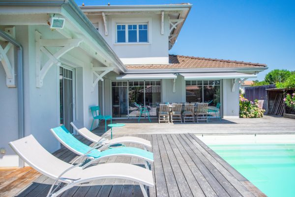 Découvrez cette superbe villa neuve idéalement située dans un quartier calme de Lège Cap Ferret, charmant village en début de la presqu’île du Cap-Ferret, entre bassin et océan. Profitez d’une villa raffinée, de sa piscine chauffée, d’une belle terrasse agrémentée de mobilier de jardin et d’une grande table pour vos repas conviviaux.